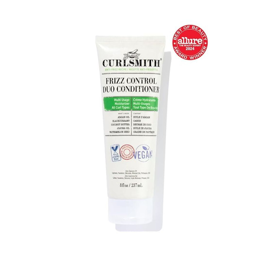 The Frizz Control Duo Conditioner is a multi-use formula that works as both a rinse-out and a leave-in, giving your curls the flexibility they need. Infused with blackcurrant seed oil and coconut butter—rich in omegas 3, 6, and 9—it helps replenish moisture, smooth the cuticle, and fight frizz. Whether you're detangling or boosting shine and softness, this lightweight, nourishing conditioner leaves hair manageable and silky without build-up. Perfect for all curl and texture types, and free of parabens, silicones, and sulfates.
