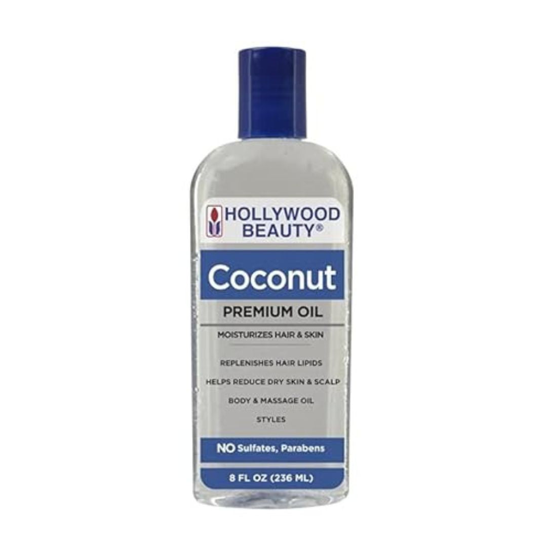 Hollywood Beauty Coconut Premium Oil is your all-in-one solution for hair and skin care. This 2oz bottle is packed with nourishing oils and proteins that deeply penetrate the hair shaft, restoring essential lipids for stronger, healthier hair. Free from sulfates and parabens, it hydrates the scalp, helping to reduce dryness and dandruff while promoting softness and shine. It is versatile and lightweight and works as a luxurious body and massage oil, leaving skin feeling smooth and moisturized.