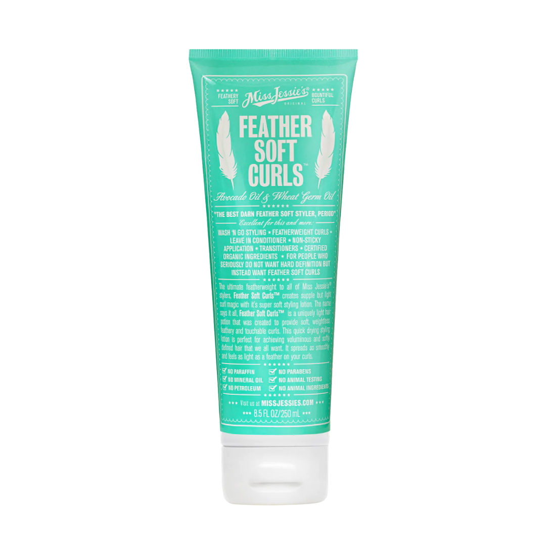 Miss Jessie’s Feather Soft Curls is your go-to lightweight styling lotion for soft, touchable, and defined curls. This quick-drying formula adds shine, tames frizz, and enhances your natural curl pattern—without the crunch or stiffness. It’s perfect for wash-and-go styles, waves, and curls that need a little hold without feeling heavy. Great for those who love volume, bounce, and soft definition.