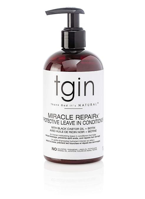 Give your hair the care it deserves with the tgin Miracle RepaiRx Protective Leave-In Conditioner—a powerhouse formula that restores softness, promotes growth, and protects against damage. Infused with Black Castor Oil and Biotin, this lightweight leave-in deeply hydrates and strengthens each strand, leaving hair defined, shiny, and easy to manage.